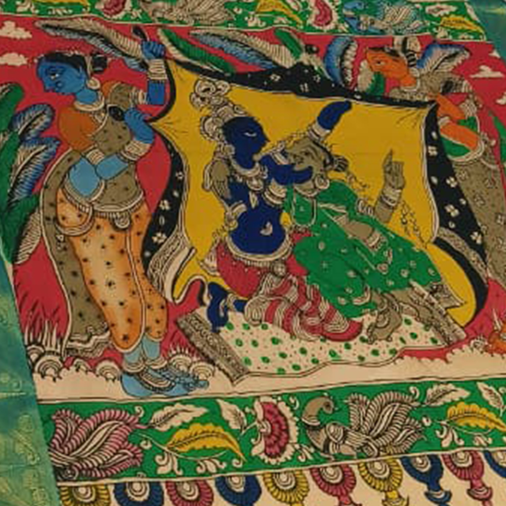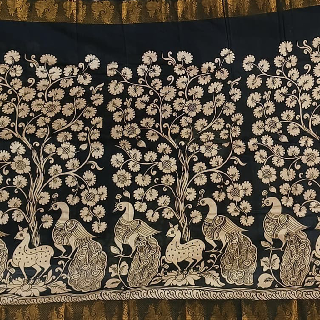 The hand-printed Kalamkari in Mangalgiri silk saree